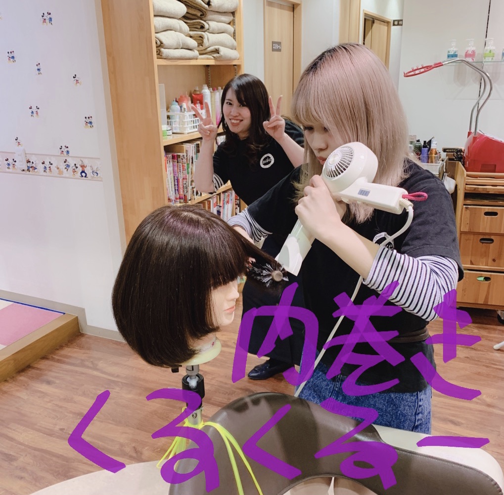 課題のスタイルを日々練習し先輩方にチェックをしてもらい合格するとお客様に施術させていただくことが可能となります🥰