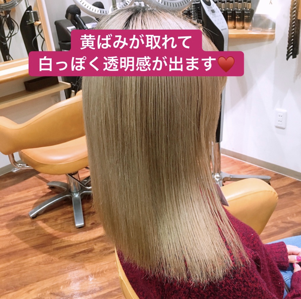 黄ばみが出てきた髪に色素が浸透しキレイな髪色を長く楽しめます♥️