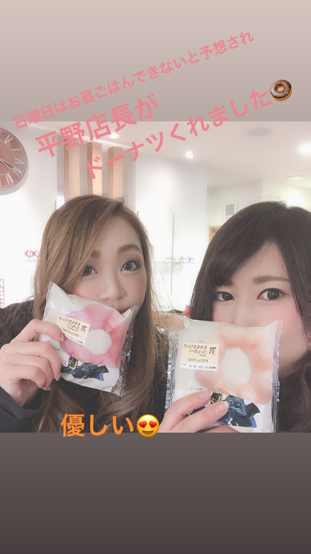 優しい平野店長がちょっとでもつまめるようにとみんなにドーナツを買ってきてくれました😁