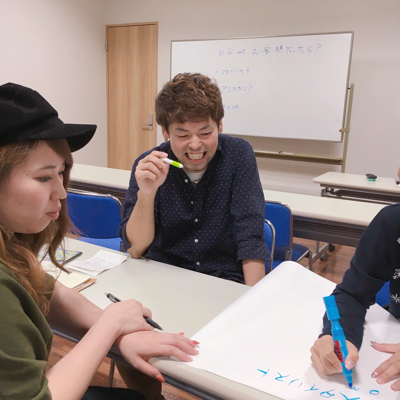 どの意見もとても素晴らしかったのですが、やはりお客様に喜んでもらえてかつ、次回もまた通いたい!とお客様に感動してもらえる美容室にするために私たちスタッフがお客様の似合う髪型、ケアの仕方、次はどのようなメニューにすればいいのかなど提案を考えていくことが大切なことだと改めて理解しました。